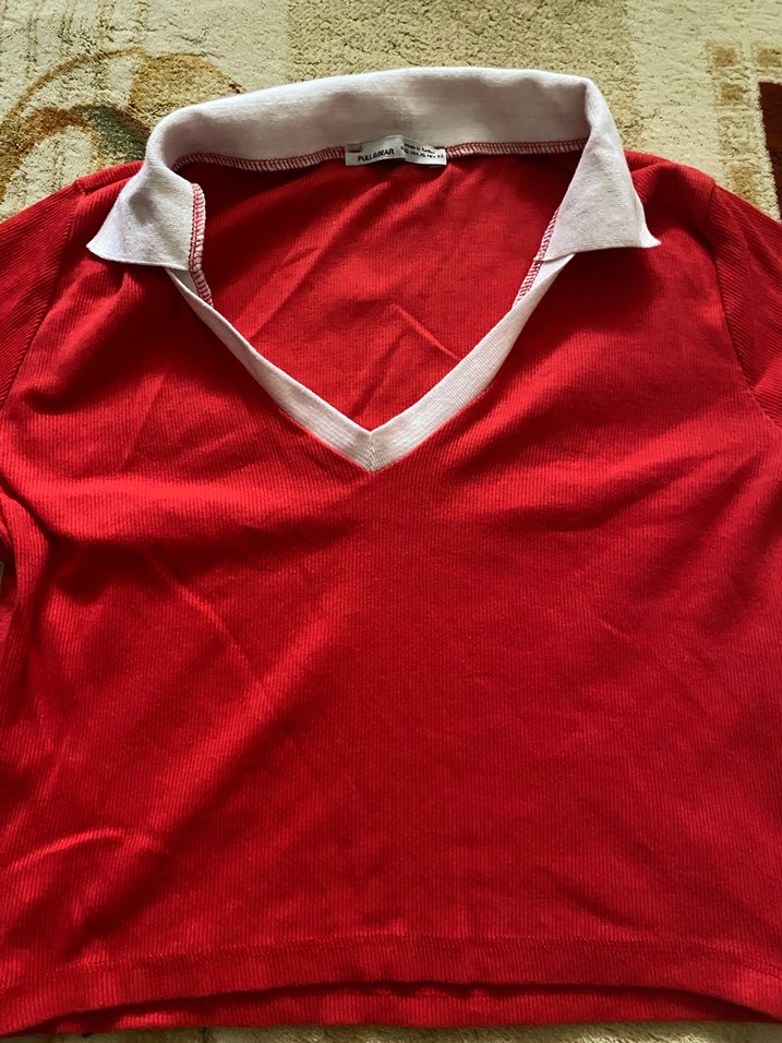 Polo yaka crop bluz