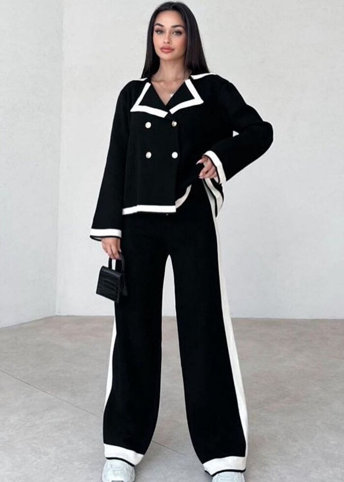Triko Takım Gold Düğmeli Hırka ve Palazzo Pantolon Anasayfa Kadın