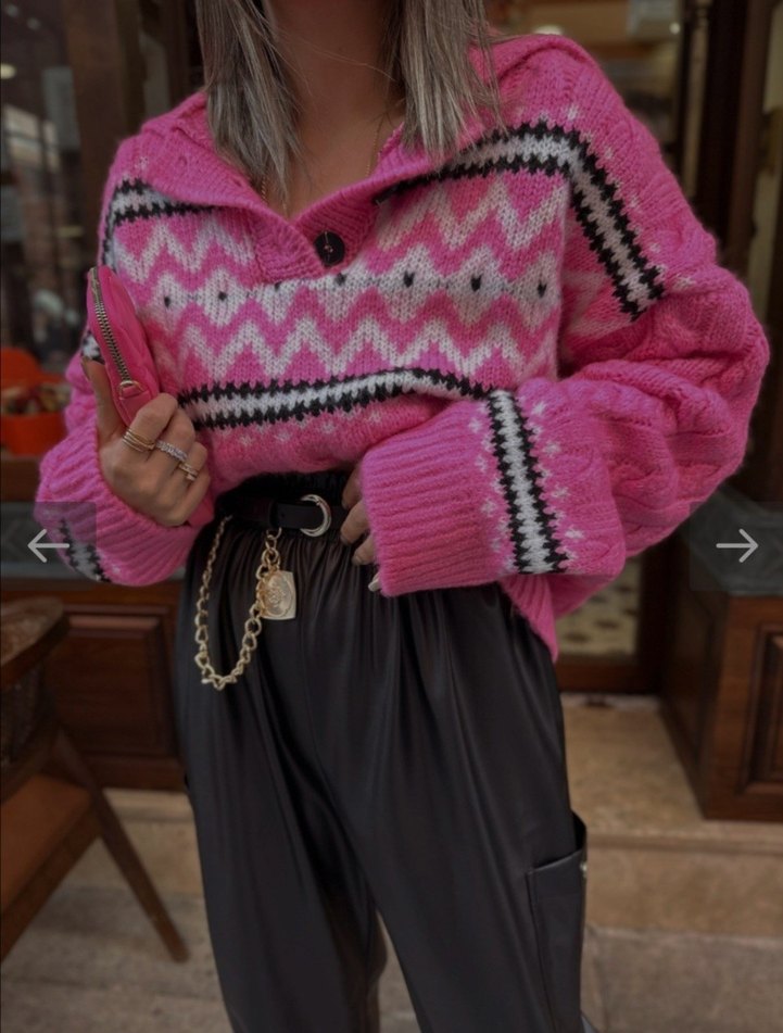 Polo Yaka Etnik Desenli Triko Kazak