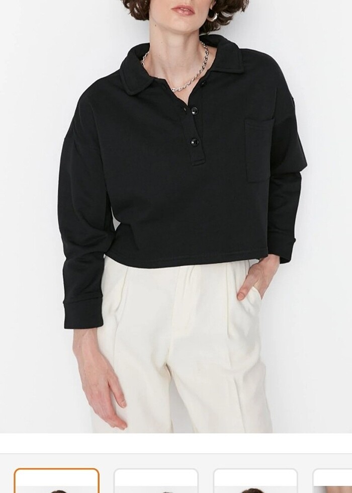 Crop, polo yaka, markası trendyolmilla. Hiç giyilmedi ve defosuzdur.