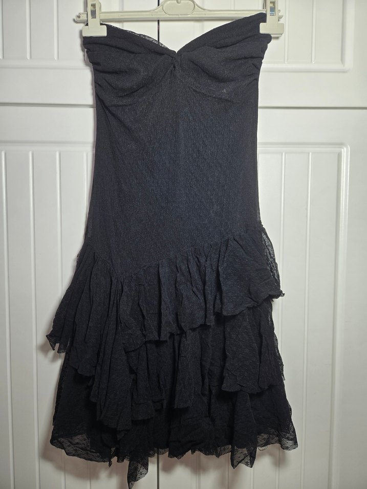 Siyah, straplez ve uzun boylu bu abiye elbise, kat kat fırfır detaylarıyla gotik parti stiline uygun şık bir görünüme sahiptir. İade kabul edemiyorum, lütfen sorarak alım yapınız. Almayacağınız ürüne teklif vermeyiniz, makul teklifleri kabul ediyorum. isim her yerde aynı aynı. #Gap #Vakko #Parkbravo #Morgan #Pinko #MaxMara #Diesel #Fabrika #İpekyol #Twist #Gusto #Mango #Only #Marks&Spencer #Maje #silk&cashmere #DianevonFurstenberg #DKNY