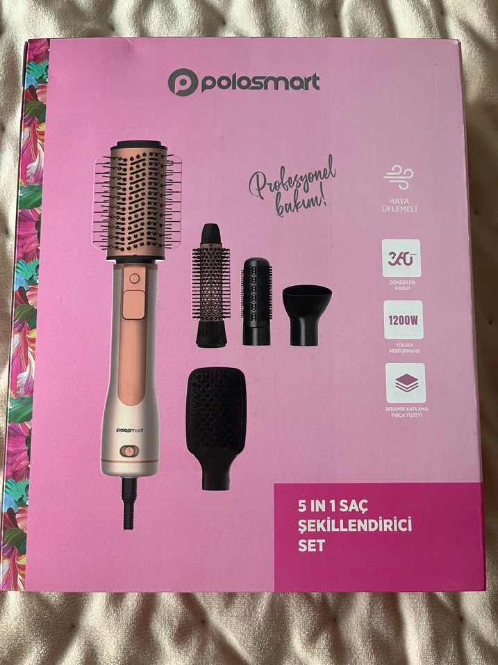 Polosmart 5in1 saç şekillendirici set, 1200W güçte, hava üflemeli ve çeşitli aparatlar içerir. Hafif pembe renktedir. ♀️hiç kullanılmadı desem doğru olur denedim hediye geldi fazla olduğu için satıyorum