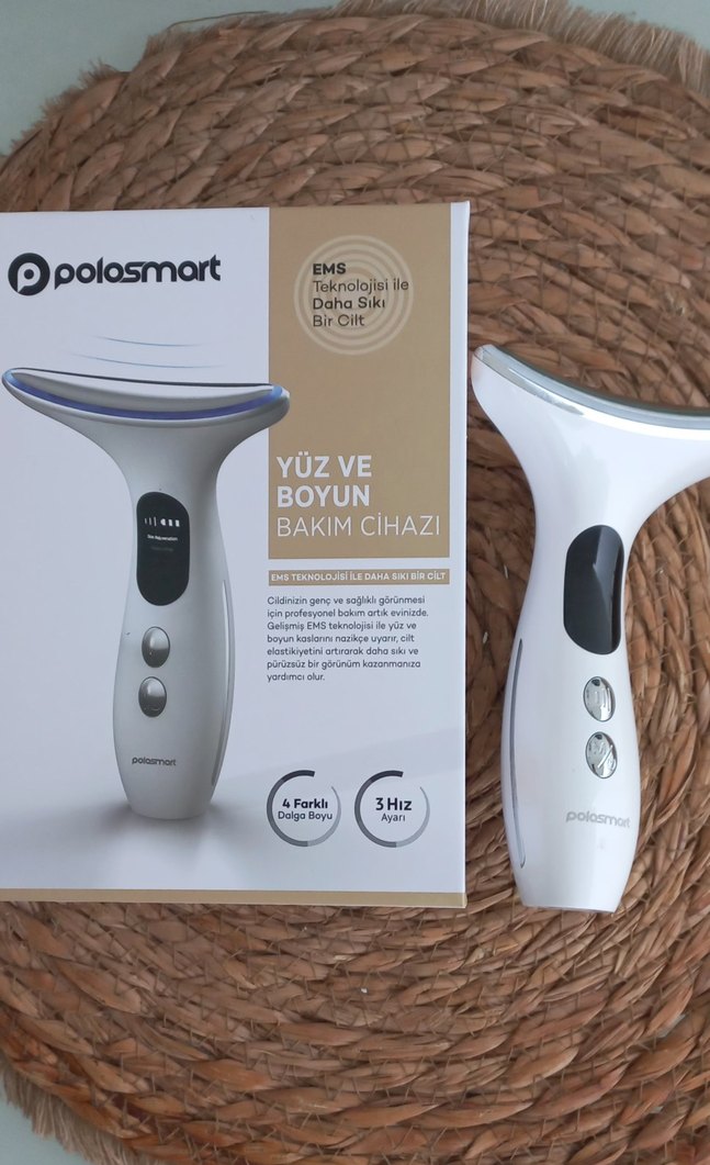 Polosmart beyaz renkli yüz ve boyun bakım cihazı EMS teknolojisiyle cildi sıkılaştırmaya yardımcı olur. 4 dalga modu ve 3 frekans ayarı bulunur. #sephora #masajaleti #kozmetik #bakımcihazı #hediye #bakım #parfüm #fondoten #far #ruj #allık #nemlendirici #foreo#polosmart