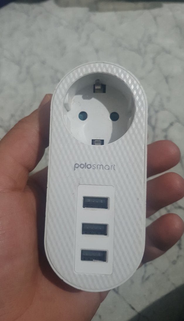 Polosmart beyaz şarj cihazı, bir priz ve üç USB portu ile çoklu cihaz şarj imkanı sunar. Kompakt ve kullanışlı tasarım. ⚡