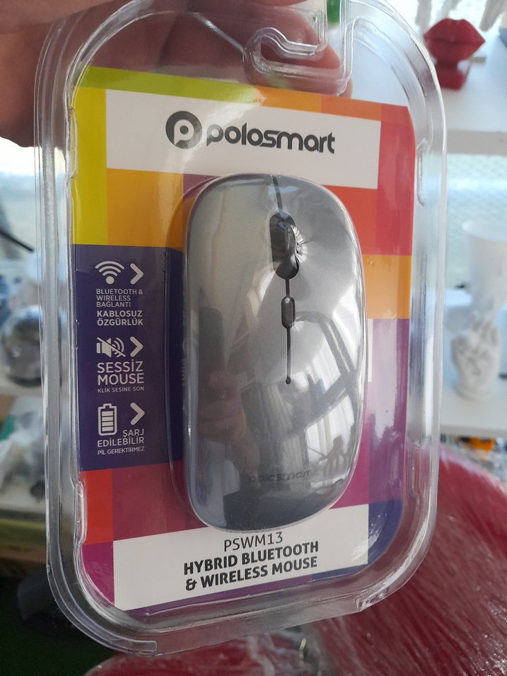 Polosmart PSWM13 model hibrit Bluetooth ve kablosuz bağlantı seçeneklerine sahip, sessiz tıklama özelliği bulunan şarj edilebilir mouse. ️