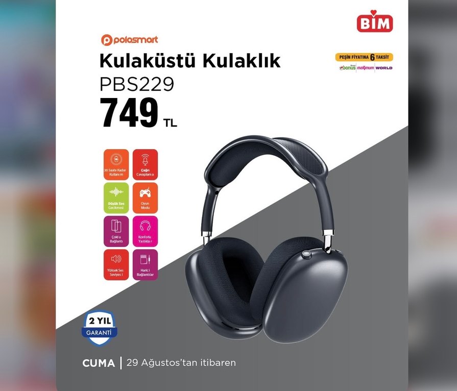 Polosmart PBS229 kulaküstü kulaklık, 30 saate kadar kullanım, çağrı desteği ve oyun modu sunar. Kablosuz bağlantı, rahat tasarım ve gürültü engelleme özelliklerine sahiptir. 2 yıl garantiyle. Üründe kutu mevcut değildir