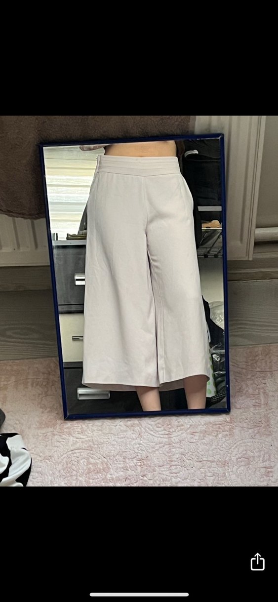 1 kere giydim bana kısa olduğu için satıyorum. Bej renkli, pamuklu kumaştan midi boyda bol kesim kadın pantolon. Desensiz tasarımıyla günlük ve rahat sokak stiline uygundur. ✨