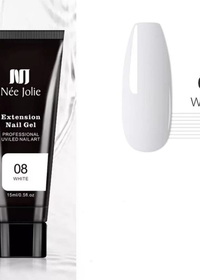 1 adet nee jolie 15 ml beyaz poly jel . 1 adet 45 ml solüsyon . 10 adet dual form . 1 adet jel fırçası . 1 adet 100/180 törpü . Sıfır . . . .