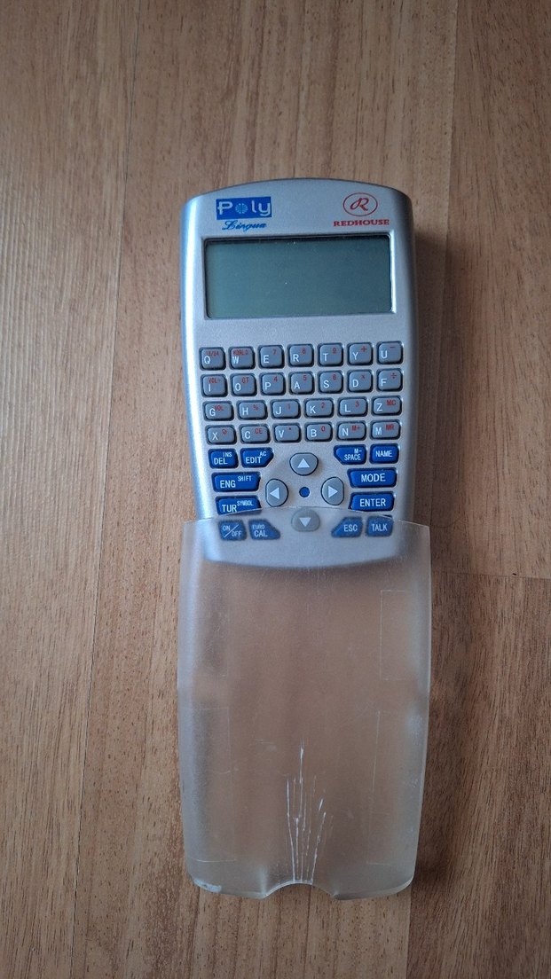 Ekranlı, çok fonksiyonlu düğmeleri olan gri ve mavi renklerde taşınabilir, Koruyucu kapağı mevcuttur. poly lingua redhouse ingilizce türkçe konuşan sözlük.. sorunsuz temiz sesli sözlük..