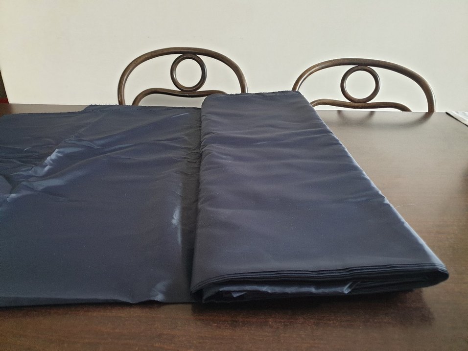 Polyester astar kumaş çift en. En :150 cm. Boy: 30 m. Renk koyu lacivert Koç Holding, Bozkurt Kumasları Fabrikasında üretilmiştir, çok kalitelidir 70gr/m² ya da 104 gr/ mtul Şimdiki astar kumaşlardan çok daha kalitelidir, fonluk perde bile yapılabilecek sıklıkta dokunmuştur. 150 cm eninde ve 1 metre boyundaki kumaşın fiyatıdır. Terziler için tümünü alırsa 2000 TL olur.