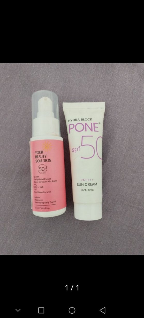 PONE Hydra Block SPF 50 güneş kremi PA+++ koruması ile UVA ve UVB ışınlarına karşı korur. Your Beauty Solution SPF 50+ koruma sağlar, hafif ve nemlendiricidir. Denendi sadece tenime gitmedi pek