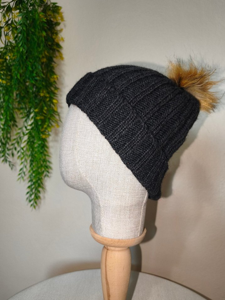 Ponponlu Bayan Örgü Bere Füme Antrasit