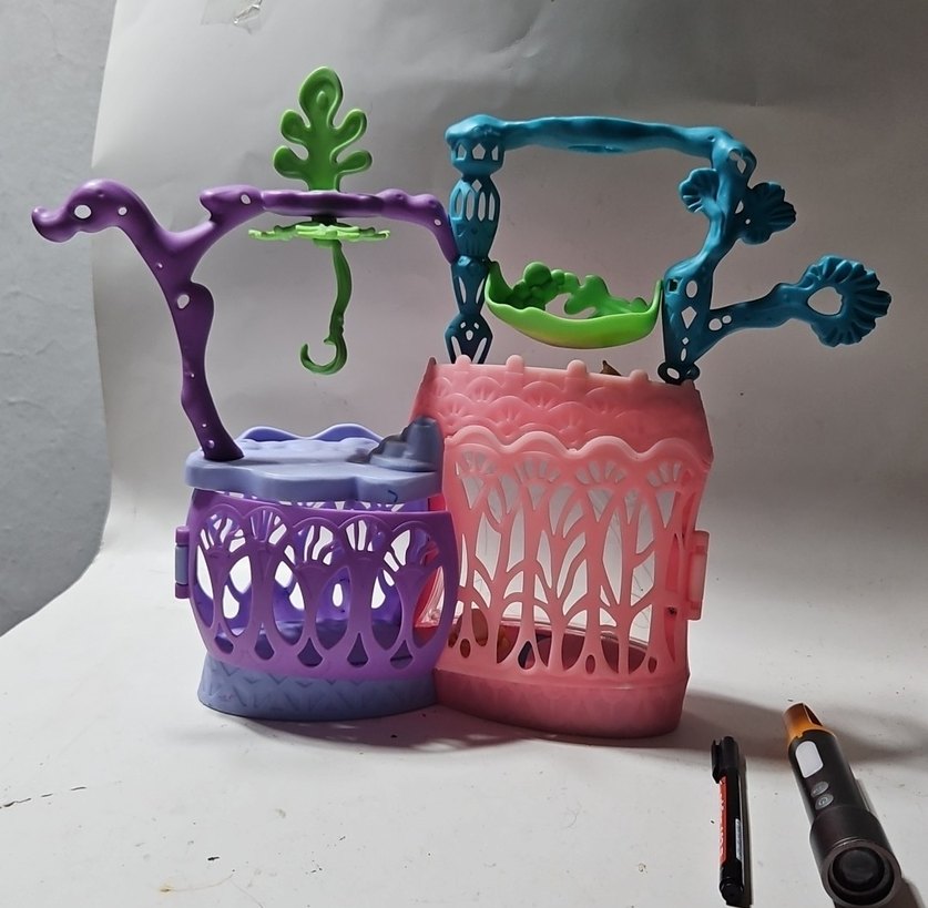 Bu renkli plastik oyuncak seti, dekoratif desenlere ve asılı parçalara sahip çok bölmeli tasarımıyla hayal gücünü destekler.