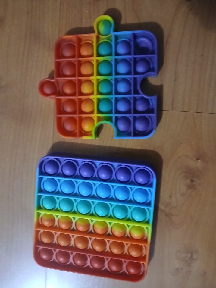 Yumuşak malzemeden yapılmış, duyusal oyun ve stres azaltma için renkli puzzle ve kare şeklinde pop it oyuncaklar. #popit #duyusaloyun