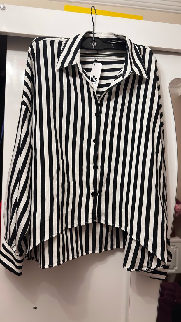 48-50-52 bedenlere kadar uyumludur İki kol arası 65 cm Boy 70 Yeni ve etiketli Etiket te M beden yazıyor ama kalıp geniş