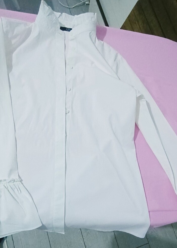 Çok az giyildi harika bir gömlek aynı sıfır gibi... Yaka ve kolda aynı fırfır kullanılmış giyince çok şık duruyor kumaş çok kaliteli giyildiği anda kıyafeti yukarı taşıyan bir havası var