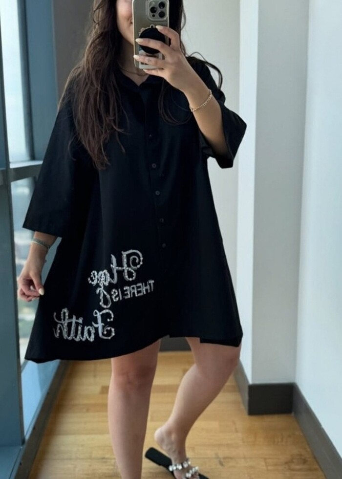 Ister tunik ister elbise poplin pamuk kumaş yanları cepli oldukça sık taş detaylı oversize kalıp 50 bedene kadar olur
