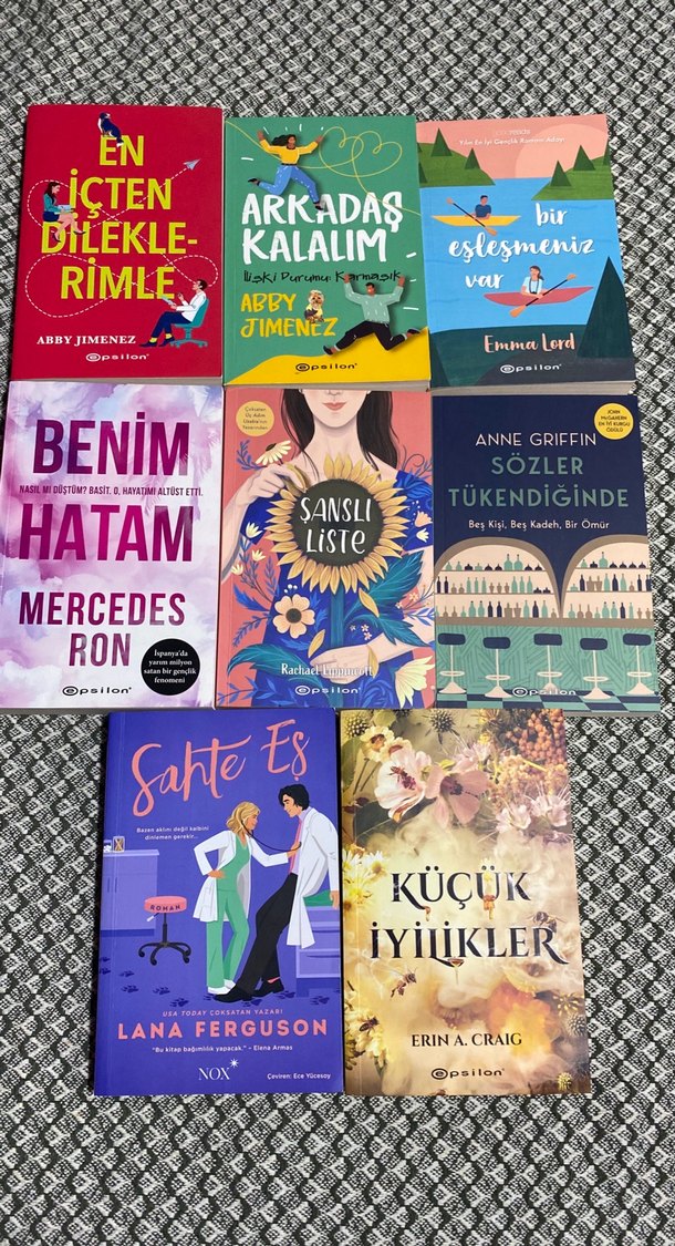 Abby Jimenez, Mercedes Ron, Lana Ferguson ve diğer yazarların romanlarından oluşan çeşitli bir kitap koleksiyonu. Sahte es / satıldı Küçük iyilikler Benim hatam SATİLDİ Şanslı liste Sözler tükendiğinde SATİLDİ En içten dileklerimle SATİLDİ Arkadaş kalalım SATİLDİ Bir eşleşmeniz var SATİLDİ Epsilon yayınları. Sıfırdır çoğu. Fiyat temsilidir. Almadan önce sorunuz.