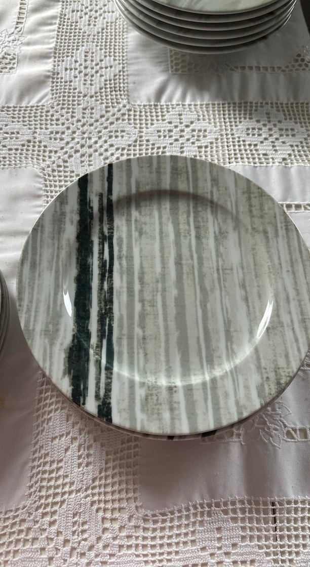 4 adet Gri tonlarda dikey çizgilerle süslenmiş yuvarlak Servis tabağı. Yemek servisi için uygundur. ️