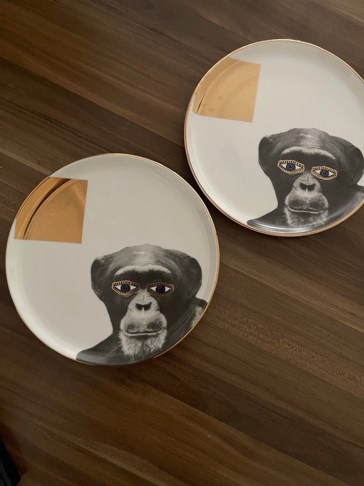 Adet fiyatı ‼️ Kahverengi, maymun yüzü ve altın detaylı desenli tabak seti. Yemek sunumunda farklı bir tarz sağlar. Ürünler gıda ile çok ast vaziyette elde yıkandı hiçbir kusuru yoktur.