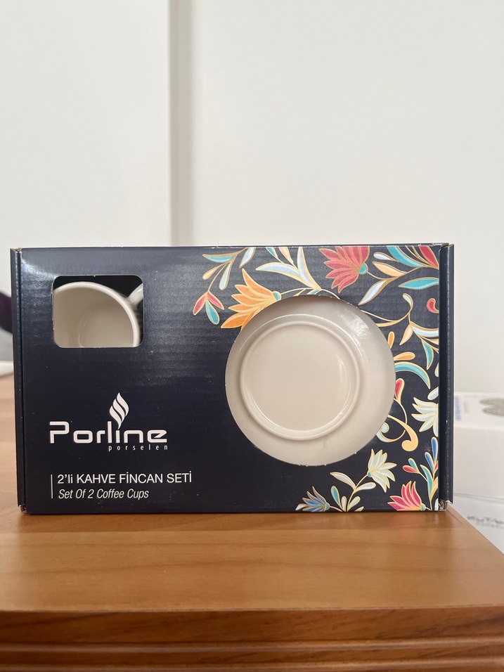 Porline markalı, bohem tarzda, 2 adet bej kahve fincan seti. ☕