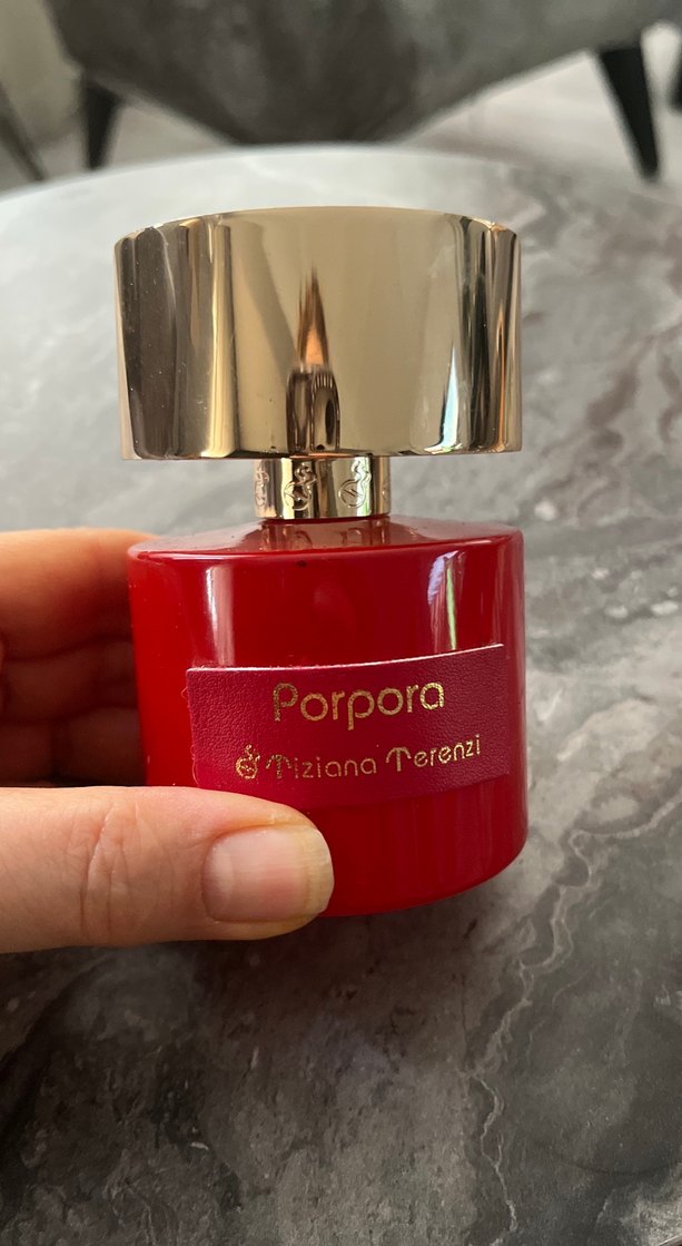 Parlak kırmızı şişede, modern klasik tarzda ve göz alıcı bir görünüme sahip Porpora erkek parfümü.
