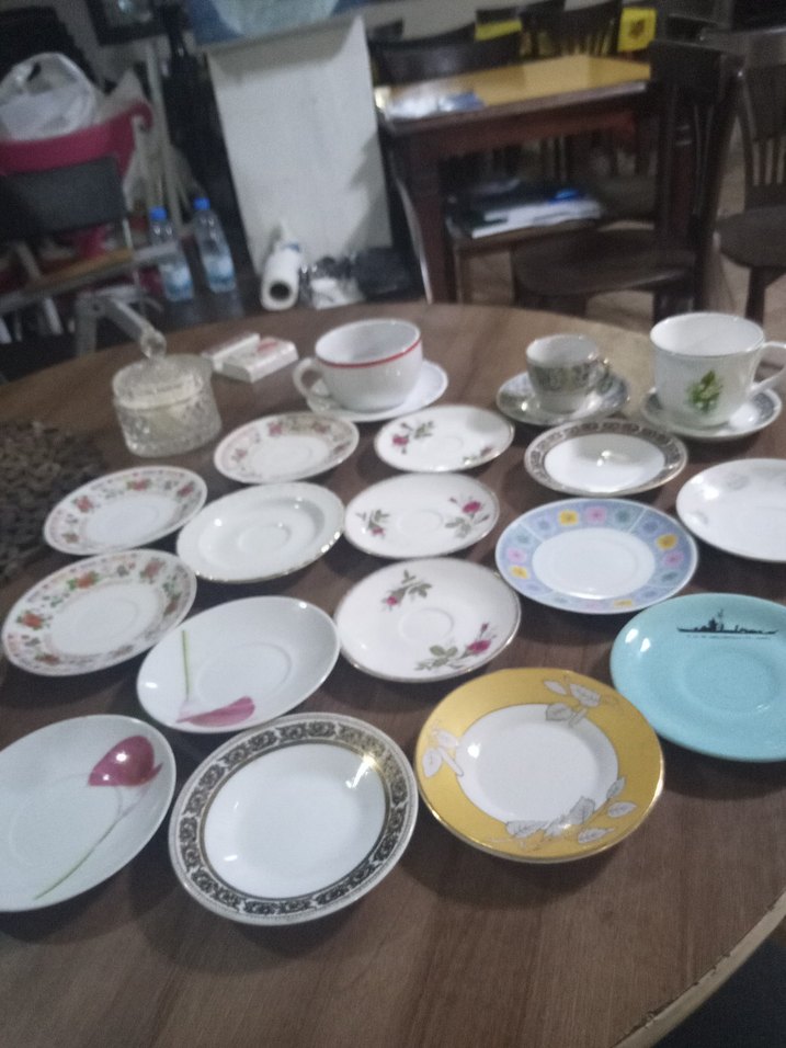 porselen fincan tabakları 3 adet kahve fincanları tabakları ile birlikte tanesi 20 lira.fincan tabakları tane10 lira☕