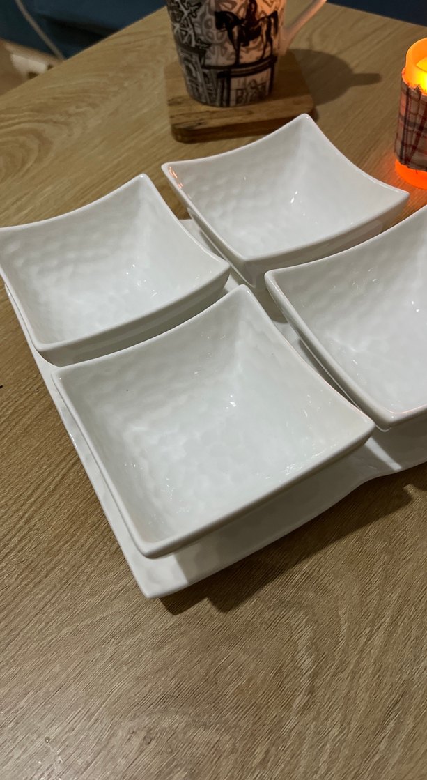 Porselen malzemeden, beyaz, 5 parça sunumluk. Çiziksiz, kusursuz