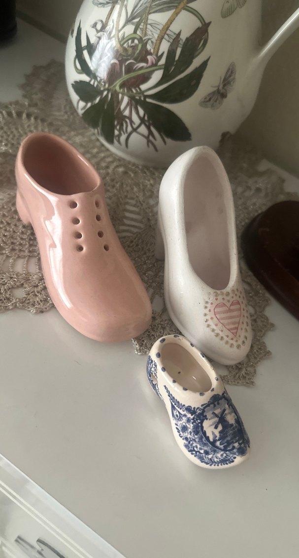 Porselen Pabuçlar öndeki Hollanda’da damgalı arkadaki pembeyle beyaz biraz ebat olarak büyükler atık kırık yok güzel ürünler fiyat üçünün fiyatı çok uygun