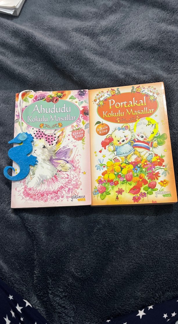 Portakal ve Ahududu kokulu masallar içeren, renkli ve eğlenceli çizimlere sahip çocuk kitapları seti.