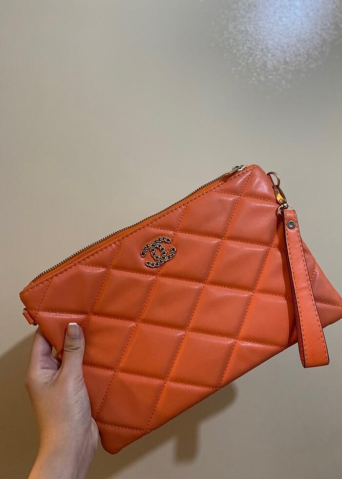 Chanel pörtföy çanta. Turuncu 2 3 defa kullanıldı. Bilek takma detayı var.