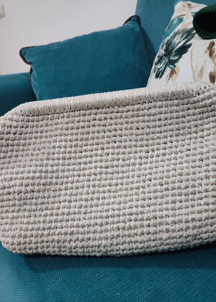 Büyük simli ribbon ipten burslu el örgüsü çanta