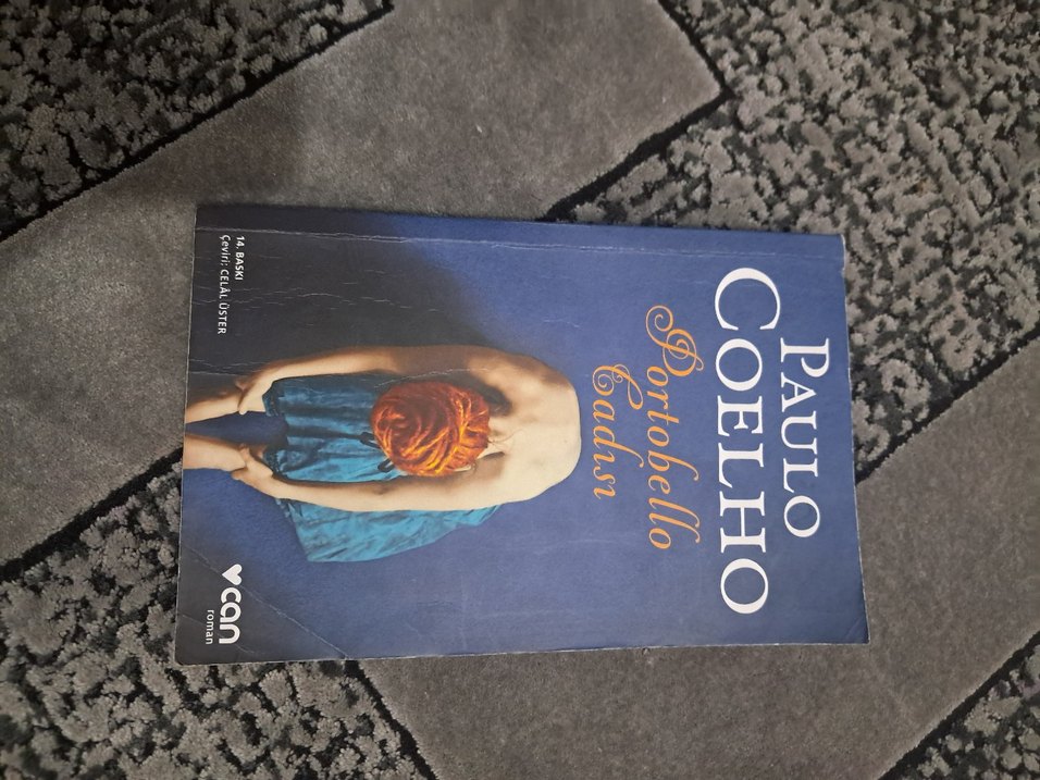 Paulo Coelho'nun 'Portobello Cadısı' adlı romanı, kırmızı saçlı ve mavi örtülü bir kişinin bulunduğu kapakla.