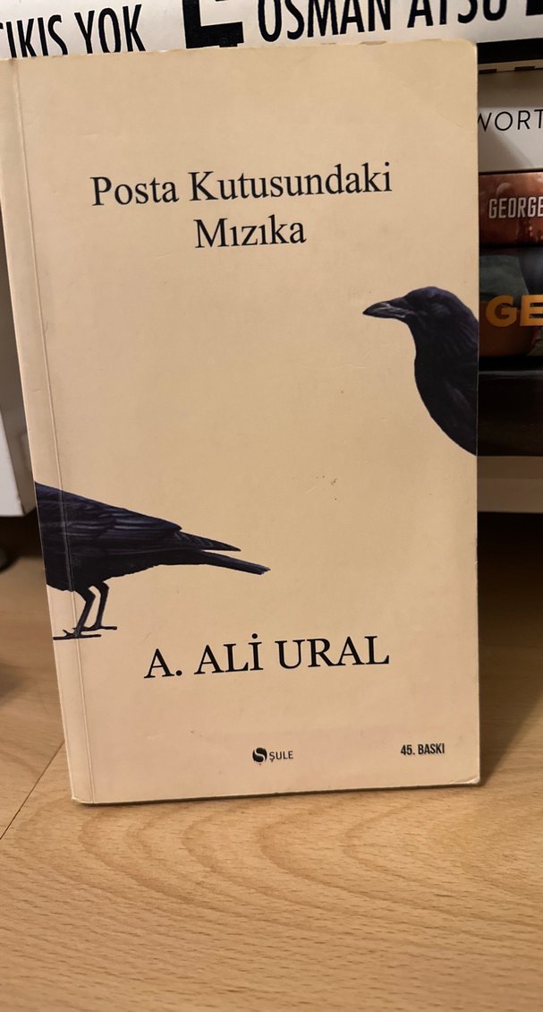 A. Ali Ural'ın 45. baskısı olan "Posta Kutusundaki Mızıka" adlı roman, sade kapak tasarımı ve kuş figürleriyle dikkat çekiyor.