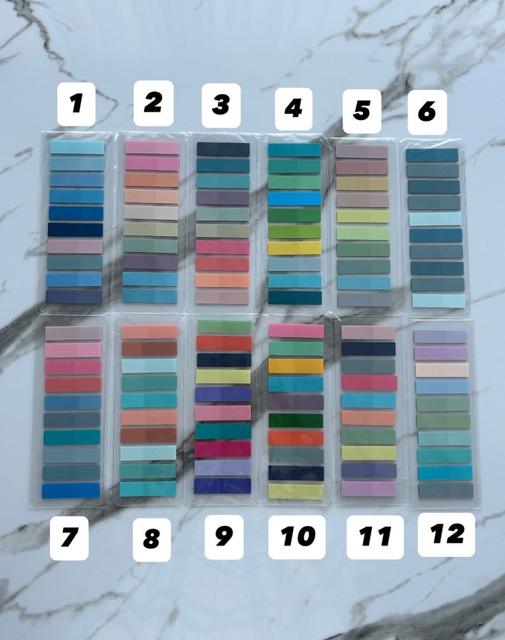 10 renkten oluşan 20 parça toplam 200 parça Şeffaf pratik ve su geçirmez Üzerine yazı yazılabilir kullandığınız yerden çıkarıp tekrar kullanılabilir (Adet fiyatıdır)
