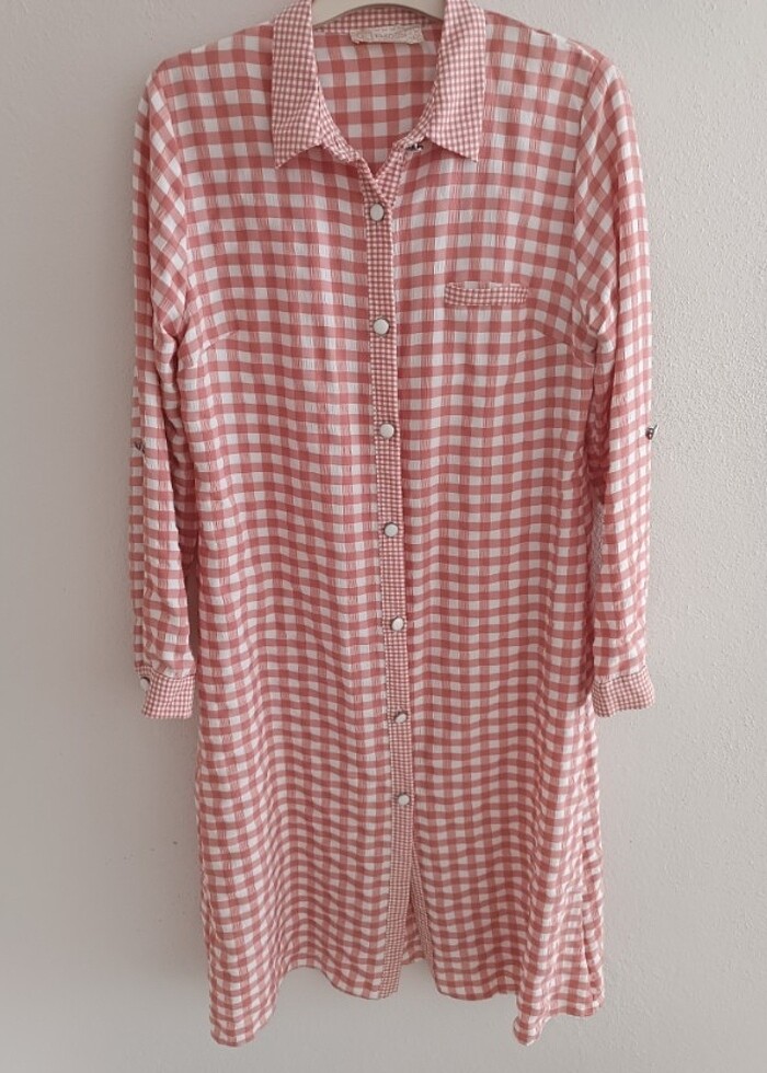 Pötikare Pembe Kareli Gömlek Sıfır hiç giyilmedi, 42 beden, 110 cm, çok rahat bir ürün. 380 TL ye aldım 350 TL ye veririm. 1 defa düşük derecede yıkandı.