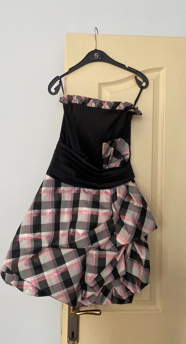 Pötikareli Midi Straplez Kadın Elbise