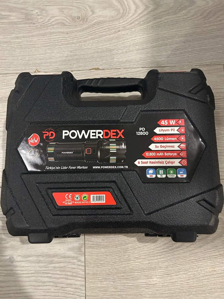 Powerdex 12.800 mAh kapasite ve 45W çıkış gücüne sahip taşınabilir power bank. PD 12800 teknolojisi, 4500 lümen parlaklık, su geçirmezlik ve 6 saat kesintisiz çalışma özellikleri bulunur.