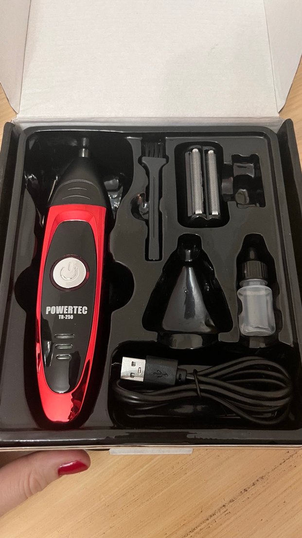 Powertec şarjlı kırmızı tıraş makinesi, çeşitli başlıklar, temizlik fırçası ve USB kablosu ile birlikte gelir. Detaylı bakım için uygundur. Sıfır hiç kullanılmadı piyasadaki fiyatların altında veriyorum içinde sadece bir parça eksik olduğu için uygun fiyata veriyorum resimdeki görünen bütün parçalar mevcuttur