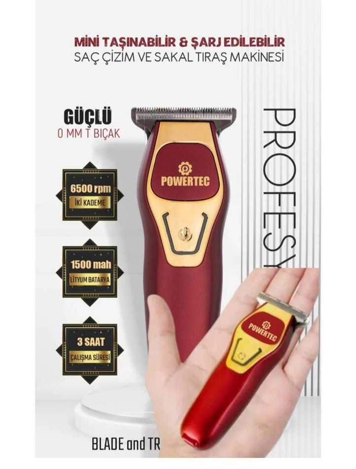 Renkli Powertec saç ve sakal tıraş makinesi 6500 rpm motor, 1500 mAh lityum batarya ve 3 saat çalışma süresi sunar. Güçlü 0 mm T bıçağa sahiptir, mini, taşınabilir ve şarj edilebilir. ✂️