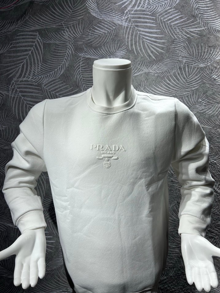 Prada Beyaz erkek sweatshirt, yuvarlak yaka ve 3 iplik pamuklu kumaştan. Düzenli kesim, minimalist baskı ve göğüste Prada detayıyla günlük şıklık sunar. ✨ Siparişleriniz aynı gün kargoya verilmektedir. Her türlü bedenimiz mevcuttur ( S,M,L,XL,XXL )