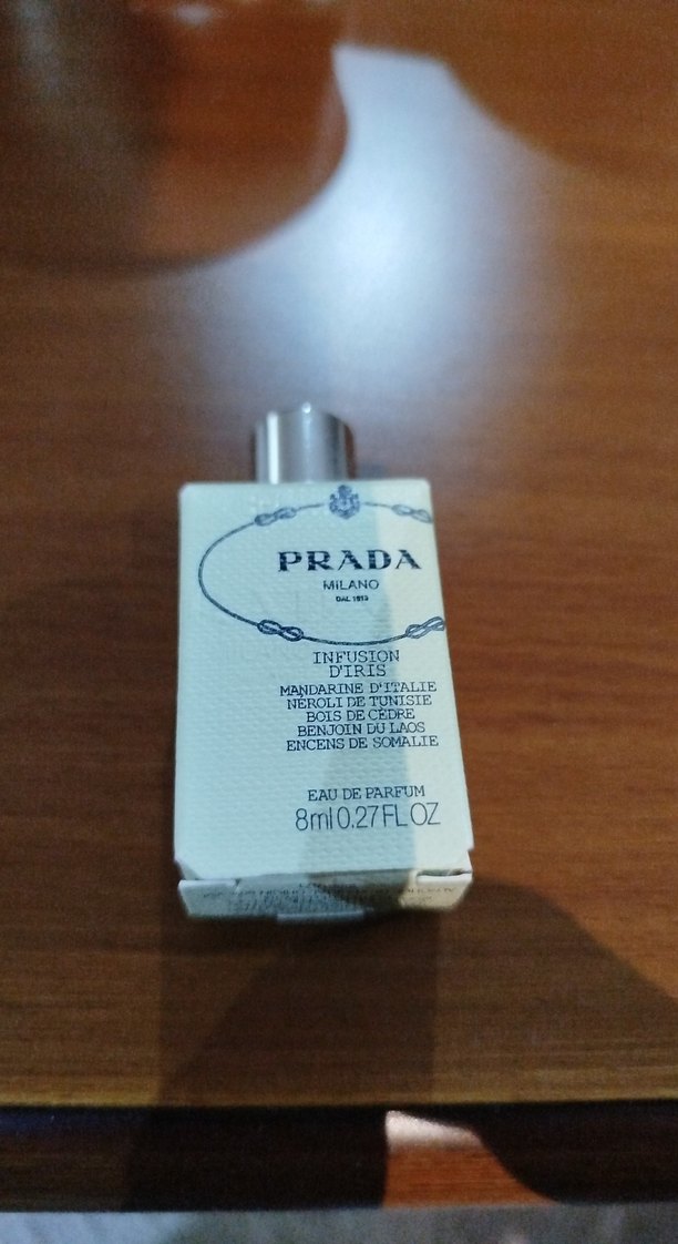 Prada Infusion D'Iris kadın parfümü, 8ml şişede mandalina, neroli, sedir ağacı ve tütsü notaları içerir. Zarif bir koku.