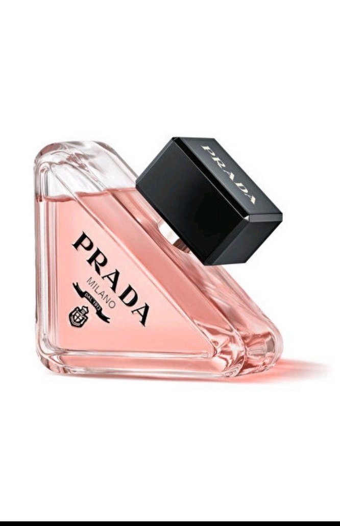 Prada kadın parfümü, yumuşak pembe kokusu ve siyah kapaklı üçgen cam şişesiyle şık ve modern bir tasarıma sahiptir.