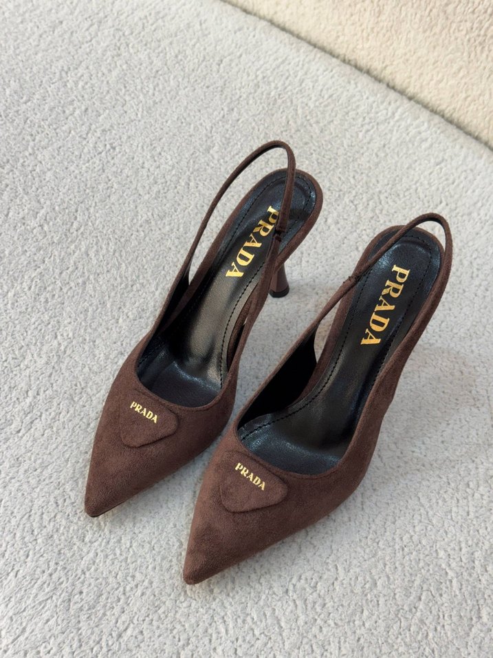 Prada Kahverengi Süet Stiletto Topuklu Ayakkabı