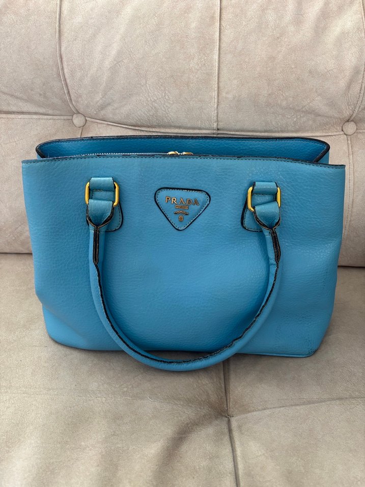 Pastel mavi deri, tokalı saplar ve desenli tasarıma sahip Prada kadın çantası. Modern klasik tarzda, Paris etkisiyle günlük kullanıma uygun. 35 cm en, 25 cm boy ve 15 cm derinliğe sahip mavi renk prada armalı kol çantası. Var olan tüm defoları görsellerde mevcuttur. #prada #zara #mango #bershka #stradivarius #pullandbear #lefties #inditex #primark #lcw #koton #mavi #ltb #hm #defacto