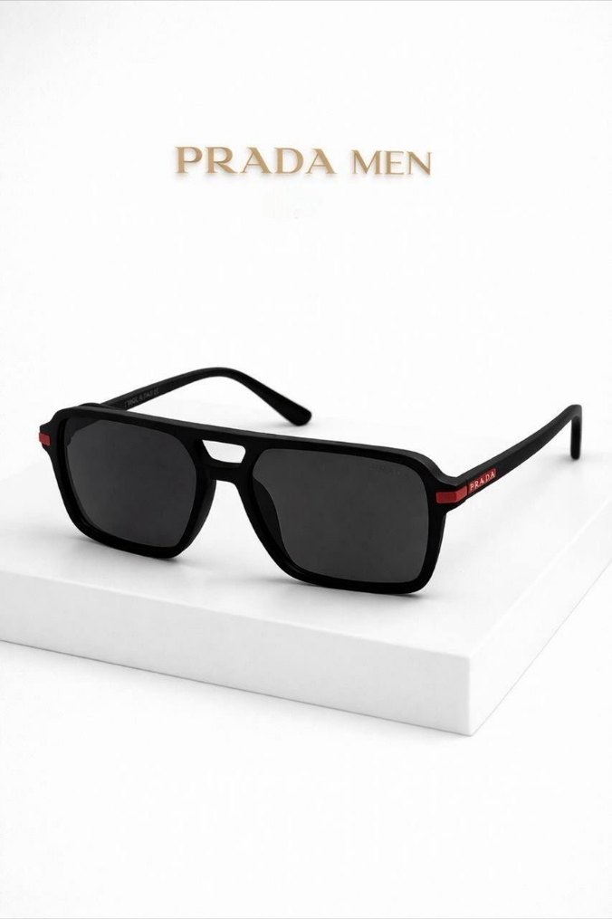 Prada Men siyah erkek güneş gözlüğü, minimalist ve streetwear tarzıyla trendy casual görünüme uygun. Zahmetsiz şıklık ve koyu renk camlar içerir. ️