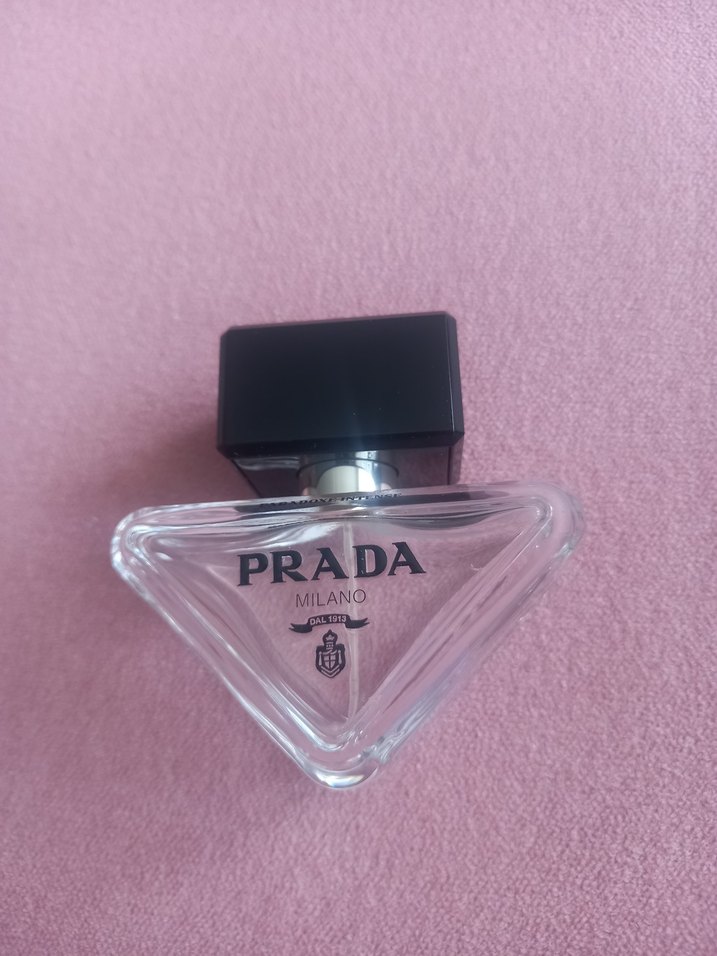 Siyah kapaklı, üçgen cam şişede Prada Milano kadın parfümü boş şişesi.. Ürün kızımındı İstanbul Sephora'dan almıştı..Şişe orjinaldir..Refilldir yani istediğiniz parfümü doldurabilirsiniz..Kapağı açınca bile müthiş koku yayılıyor.. Sanırım 30 yada 50 ml..
