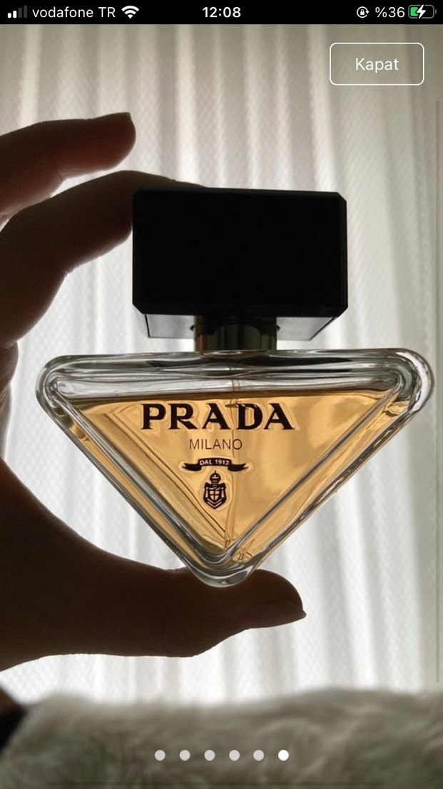 Siyah kapaklı, üçgen cam şişede Prada Milano kadın parfümü, sıcak amber renkli kokuyla sunuluyor. 30 ml 3-4 fıs kullandıl.