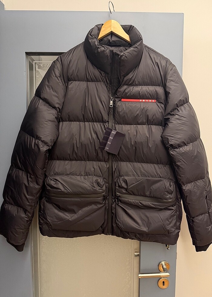 Hediye geldi , etiketli hiç kullanılmadı . Barkodu vs paylaştım, her detayı çok kaliteli , kollar çıkıp yelek olarakta kullanılabiliyor XL beden #prada #mont #yelek #erkekmont #şişmemont #zara #mango #beymen #lufian