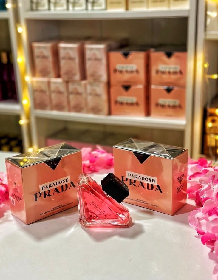 Prada Paradoxe kadın parfümü, üçgen şişe tasarımı ve çiçeksi kokusuyla dikkat çekiyor. Pembe kutuda sunulur. A++Kalite✅ Barkodlu ve batch kodlu ✅ %100 müşteri memnuniyeti